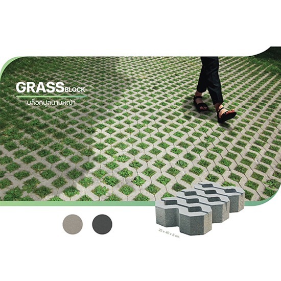 บล็อกปูสนามหญ้า (Grass Block) ด้วยคอนเซป "แปลก...แต่ดี" ให้ความรู้สึกร่มรื่นในแบบของบล็อกปูสนามหญ้า น้ำสามารถซึมผ่านได้อย่างรวดเร็ว ระบายน้ำสู่ดินได้ดี มีความแข็งแรง สามารถใช้เป็นพื้นลานจอดรถหรือใช้ต่อกันเป็นพื้นทางเท้าที่มีความกลมกลืนกับธรรมชาติได้อย่างลงตัว